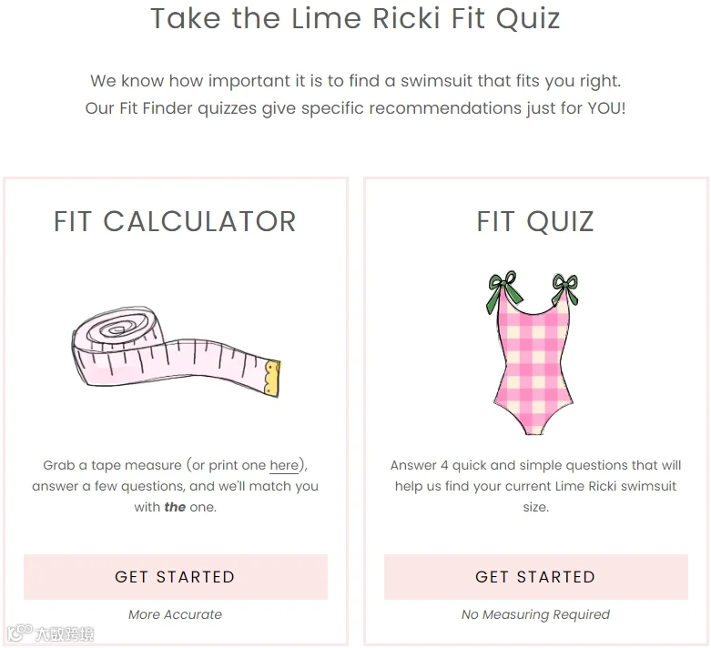 为此,Lime Ricki上线了两种在线尺码测试工具,测量指引与问答推荐,这类前置工具能够显著降低选码焦虑,提升匹配准确率,是推动泳装类目在线转化的关键配置之一。