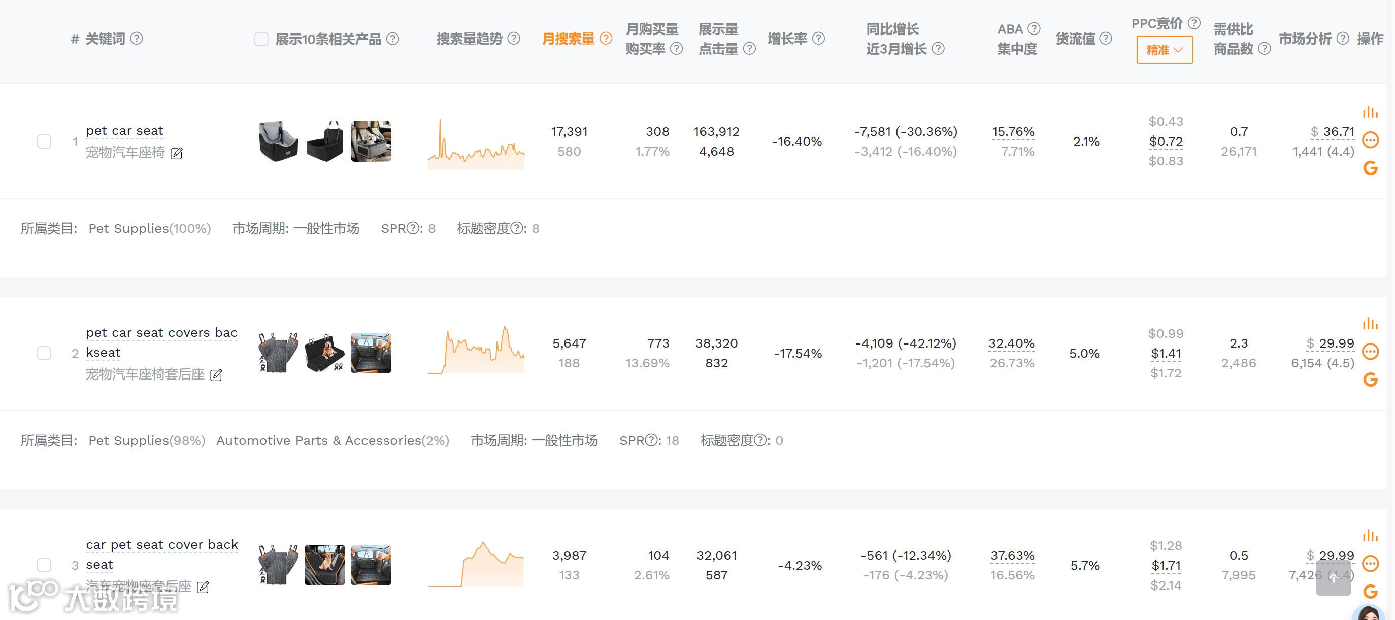 1、深入挖掘细分市场需求:在大品类中寻找细分机会。比如宠物用品大类下,可以聚焦“宠物旅行”等细分场景。通过卖家精灵【关键词选品】,发现那些搜索量大但竞争相对较小的长尾关键词。