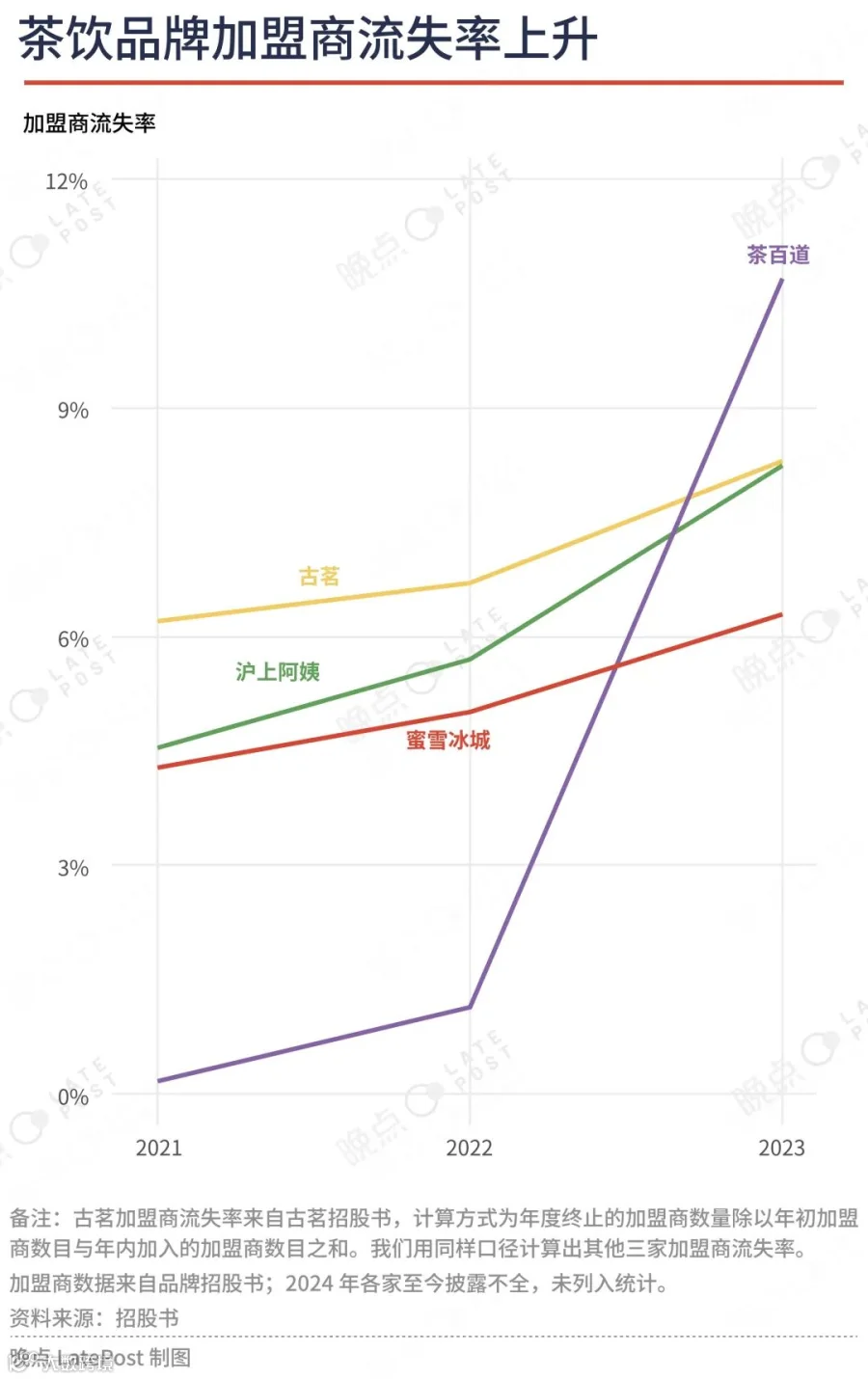 目前已经上市、公布招股书的蜜雪冰城、古茗、茶百道等,品牌利润普遍在增长,但加盟商的流失率在上升。