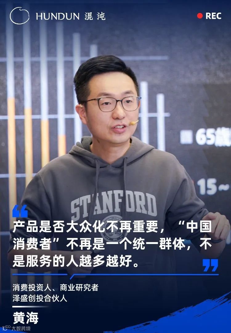 回顾过去的2024年,我们看到了太多消费现象,也看到了很多咋一看不太理解的迷思,比如: 位于河南四线城市的超市胖东来,屡屡成为全国人关注和讨论的焦点,动不动上热搜。这在十年前简直无法想象,谁会关注这样一家“小企业”呢? 新能源汽车行业进入大逃杀的时刻,价格战激烈,比亚迪甚至把价格战打到了6w以内。这个价格甚至买不到一款热门的香奈儿的包包,没错,它还在涨价。 泡泡玛特的市值超过了1000亿,而携程今年一年股价涨幅超过了50%。 这些现象背后的底层逻辑是什么? 12月21日,混沌创新大课 | 北京站,直面创业真问题 《新人群洞察:2024-2025中国消费新趋势》黄海老师为我们讲述了投资人视角下的中国消费新趋势。 他说: “只有变化才有机会,趋势分析的第一性原理就是找变化。” “产品是否大众化不再重要,消费越来越是圈层生意。” “功能性产品内卷加剧,非标价值成溢价关键。” 以下是部分内容精华,完整版课程(一个长周期趋势+三个现阶段趋势详解),在混沌APP。 授课老师 / 黄海,消费投资人,商业研究者 泽盛创投合伙人