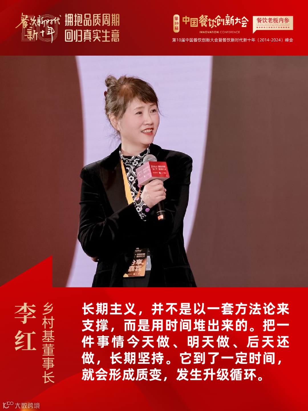 李红看来,所谓的长期主义,并不是以一套方法论来支撑所有的改变,而是用时间堆出来的。“长期主义,就是你把一件事情今天做、明天做、后天还做,长期坚持。它到了一定时间,就会形成质变,发生升级循环。