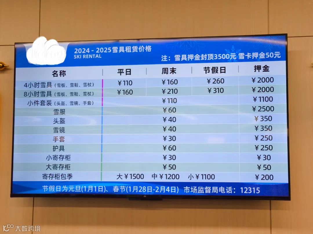 一切都是好兆头,直到第二天开卡租装备时,阿飞才发现,雪票里并不包含雪板,连带雪服+头盔+雪镜+手套+护具一起租,加起来要格外花费440元。