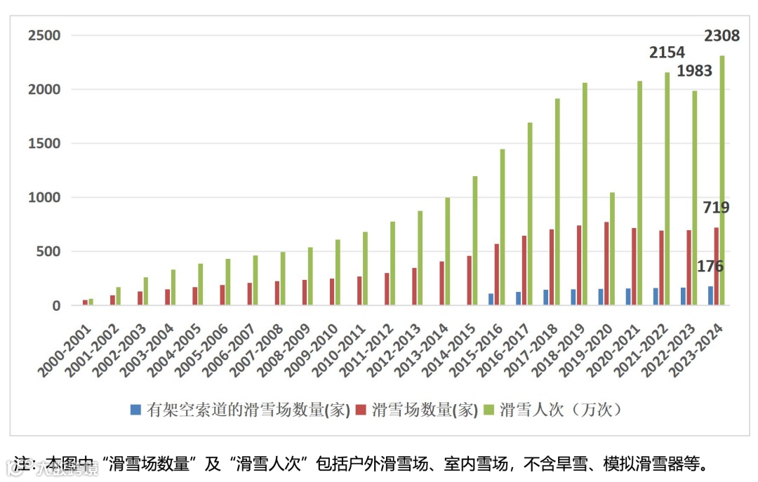 上一个雪季,是冬奥会之后的第一个滑雪元年。距《白皮书》显示,23~24的雪季,滑雪人次达到了2308万,同比增长了14.49%。到了今年的24~25雪季,预计国内滑雪人次将破2600万。