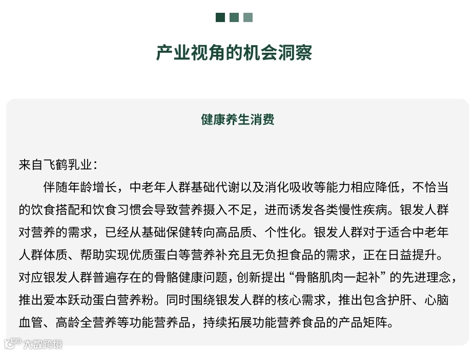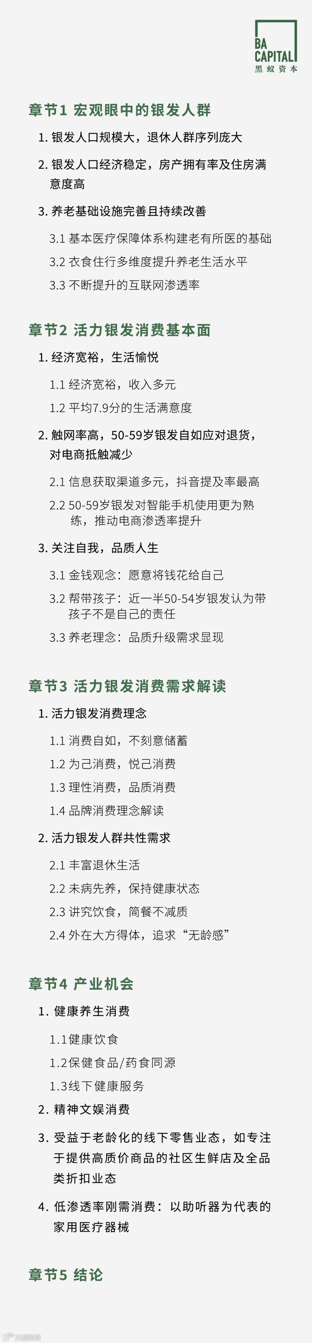 我们认为政府政策完善、养老/医疗基础设施提升、供给侧的产品和商业模式创新将会让银发人群更敢消费、更愿消费,我们会持续为大家带来关于银发人群消费的研究新知和实践分享。