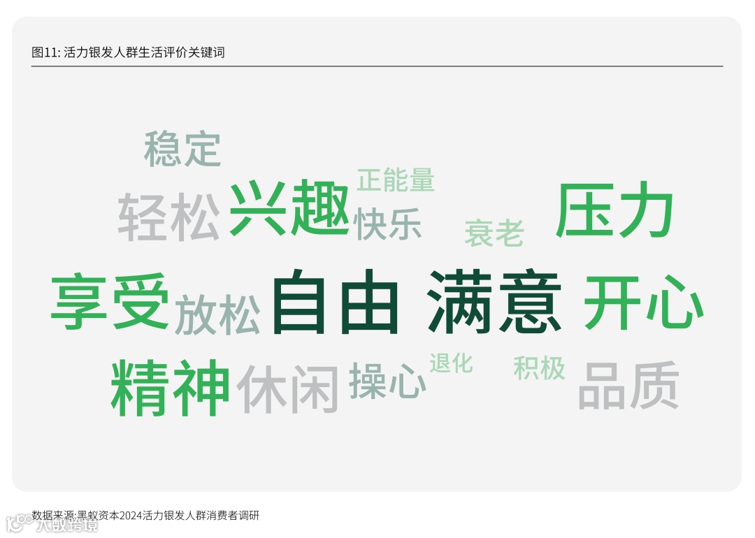 《研究》发现,从生活基本面上来讲,新银发人群经济宽裕,自有房产率高;闲暇充裕,每天超过10小时的个人可支配时间是活动半径扩大的基础,并催生出社交、出行、自娱等丰富需求。