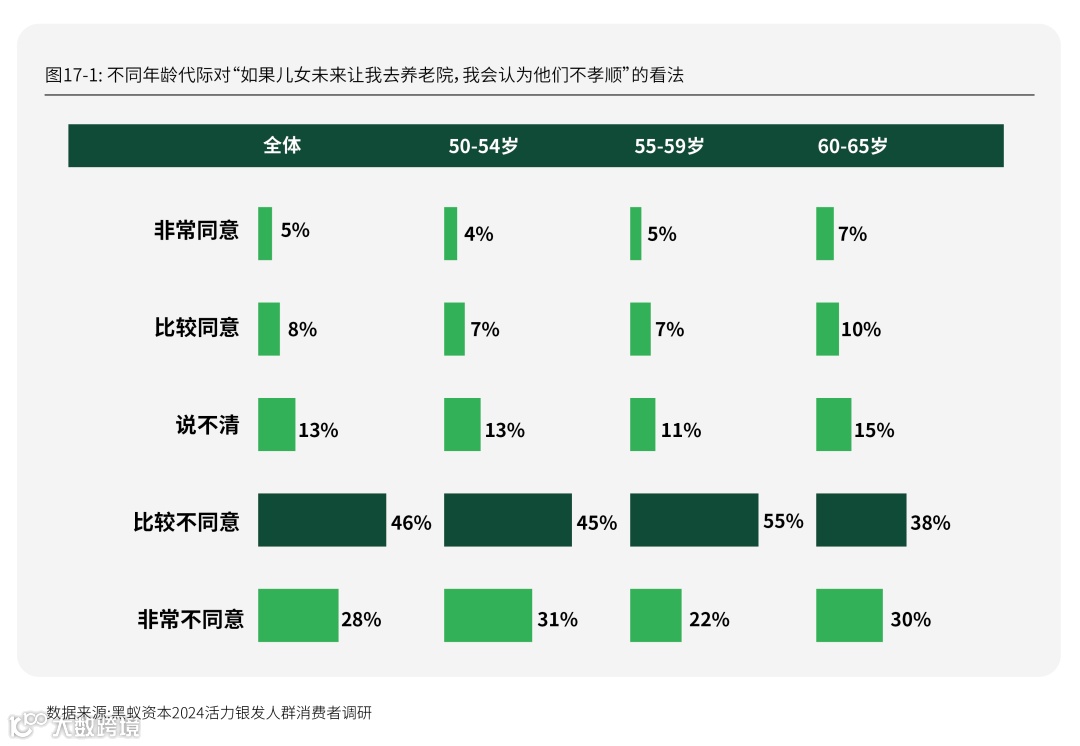 关于养老方式的态度,能够进一步了解银发人群对儿女关系以及品质养老的新思考。