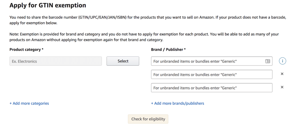 - 亚马逊允许您以“通用”身份申请 GTIN 豁免