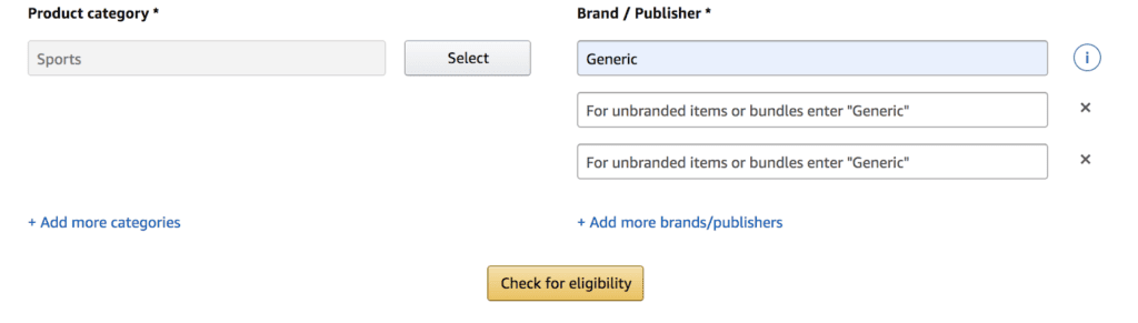 当您选择“通用”时,它可能会显示您对该“品牌”的自动批准。如果没有,您将需要添加显示没有 UPC 或品牌名称的产品图像。