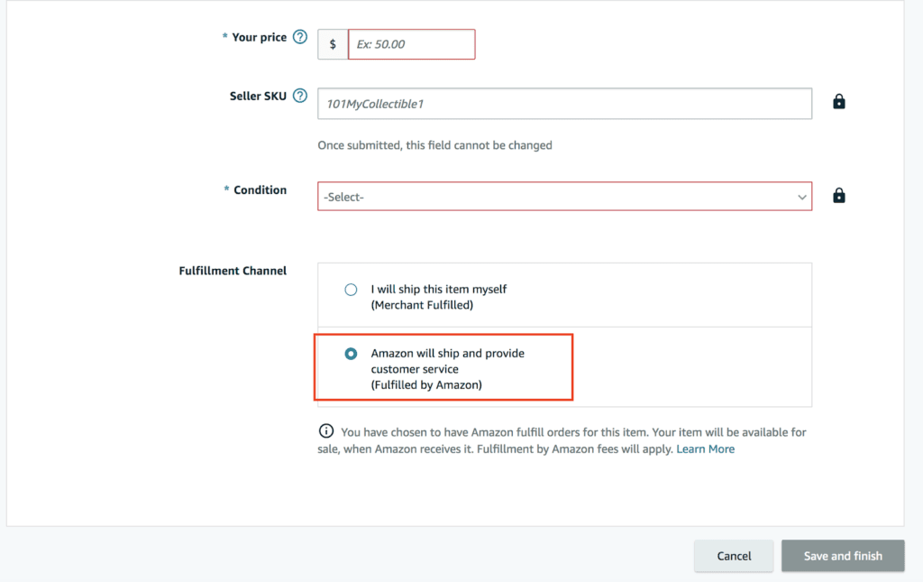 在“报价”选项卡下,确保选择亚马逊物流作为配送渠道——当然,如果使用亚马逊物流的话。