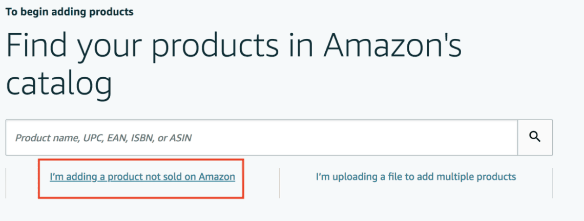 从那里,点击“我正在添加不在亚马逊上销售的产品”。