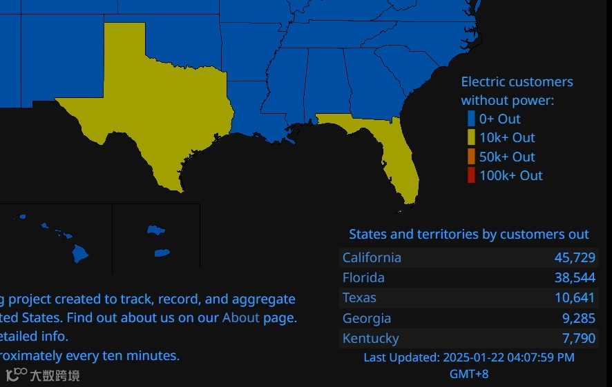 美国部分地区断电情况 图源:PowerOutage.us