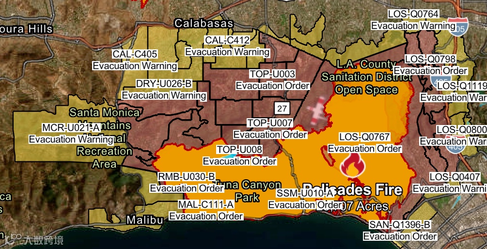 “雪上加霜”的是,根据加利福尼亚州气象局表示,预计周一圣安娜强风将卷土重来,届时南加州大火或将继续蔓延。