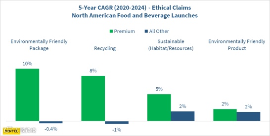 因此,提高食品饮料的品质已成为当前市场关注的焦点趋势。英敏特最新数据显示,在过去52周内,北美地区标榜为“优质”的食品和饮料产品实现了11%的增长,这一增长超过了总体创新下降2.7%的趋势。