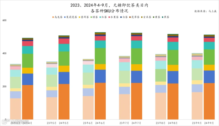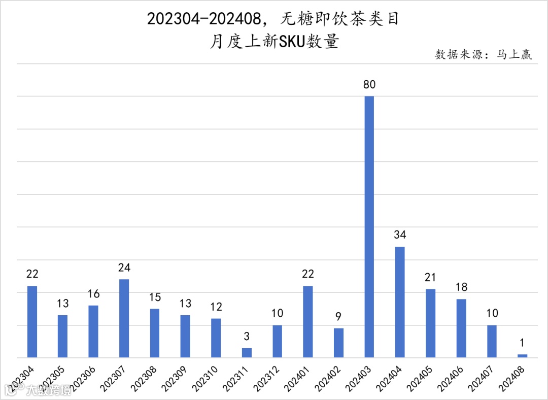 这或许也意味着无糖即饮茶类目新品快速推出,口味、茶种快速创新的态势正走向结束,该类目内的SKU数量已趋于稳定。