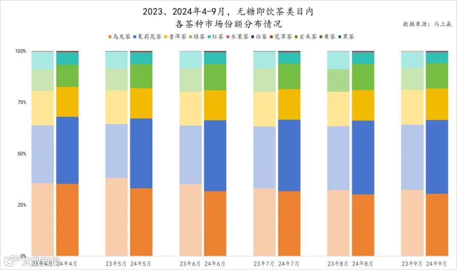 3、茶种:乌龙占比微缩,茉莉占比微涨,小茶种较稳定