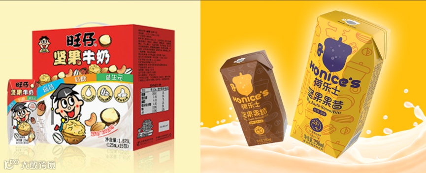 我们看一个案例,左边是老牌饮料旺仔牛奶,右边是谷仓孵化的荷乐士,两者是用户群体基本是重合的。