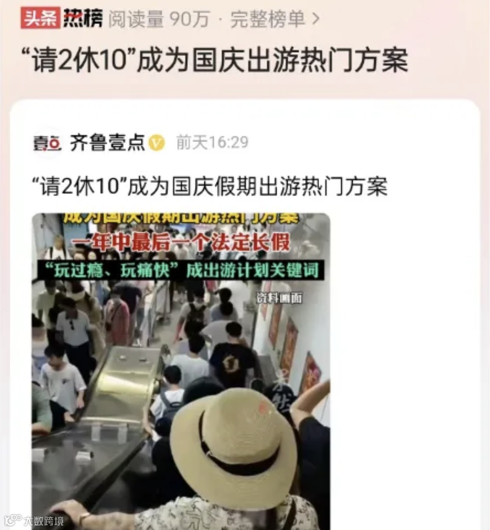朋友们,又是国庆到,又是一年一度人类大型旅游迁徙活动鉴赏时间到。 对于这个国庆能有多期待,在工位上老实积攒了半年班味儿的打工人,也忍不住提前逼自己咬牙请下国庆前两天:“请2休10”。小小国庆假期,拿下。