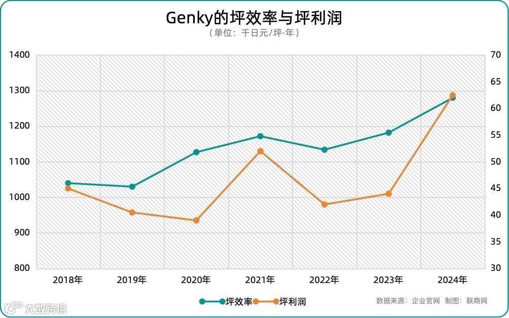 在折扣零售行业中,以OK超市和Trial超市为主的代表企业通常会在门店的后台进行商品的最终加工,如切割、包装等,以确保运营的高效性。这是行业内的标准操作。 然而,对于药妆店的GENKY来说,这种标准操作可能只是一种过时的惯例。 GENKY依托其加工中心,集中生产并供应生鲜和熟食产品,有效降低了生鲜品的成本,同时大幅提升了损耗管理效率。通过这种模式,GENKY成功实现了其门店的“标准化”转型,并大规模扩展其店铺网络。 随着GENKY标准店的网络逐步扩大,其门店的单位面积效率(即每坪的销售额,或每3.3平方米)和单位面积的营业利润均得到了显著提升。 GENKY的标准化门店具备了“食品与药品结合店”的核心结构。虽然化妆品、医药品和日用杂货等药妆商品的销售额相对较小,但由于其高利润率,这些商品成为门店盈利的关键支柱。 2023财年结束时,GENKY的盈利模式尚未完全依赖食品销售,仍需要药妆商品的利润支撑。然而,随着其自有加工中心的效益逐步显现,以及自有品牌占比的提升,它正在稳步增强其盈利能力。 未来,该品牌有望通过优化食品销售结构,仅靠食品部门便能够实现高利润率。