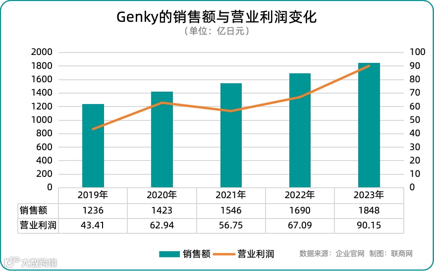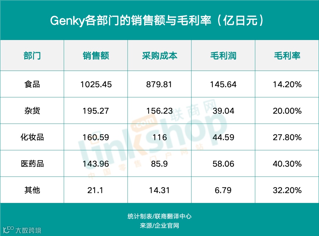 根据日本经济产业省的业态分类,在自助型超市中,如果食品销售额占比超过70%,且单店销售面积超过250㎡,则可定义为“食品超市”。创设于福井县的GENKY正是一家通过持续增加食品销售占比而崛起的连锁药妆店。 该连锁店以“邻近节省生活费的店铺”为核心理念,致力于提供极具竞争力的低价格,旨在打造一个“全品类”店铺,并且不断增强对蔬果、精肉等生鲜食品的供应能力。 GENKY最新财年数据显示,在整体销售构成中,食品占据了约70%的份额,日用品紧随其后,占比仅为12%。相比之下,药妆店的传统核心品类——化妆品和医药品分别仅占10%和8%。 这一数据表明,该品牌的业务重心已大幅偏向食品领域,几乎颠覆了人们对典型药妆店的认知。 截至2024年8月21日,GENKY共运营435家门店。它将自身定位为一家“食品折扣超市”,并通过一系列前沿举措实现精准过渡,提出了三大战略要点,即“提升客户到店频率与客单量”“低成本运营模式”“快速扩展多店铺网络”。 具体而言,GENKY已经通过自有加工中心进行肉类和熟食的内部生产,以保证质量和控制成本;扩充熟食和基本食品的品类,满足消费者多样化的需求;提高生鲜蔬果的保鲜技术,确保产品的新鲜度;强化自有品牌产品,使其在总销售中的占比超过30%,进一步提升利润率和品牌忠诚度。 与此同时,它还通过约1000㎡的标准化店铺布局,实现高效的运营管理;推广自助收银系统,减少人力成本,提高收银效率;优化供应链管理,通过品类集中配送,进一步降低运营成本;加速在全国范围内的市场渗透,抢占更大市场份额。 从结果上来看,过去五年,GENKY表现出稳定的增长趋势,销售额年均增长率约为10.6%。 利润率也从2019年的3.51%上升到2023年的4.88%,表明公司在扩大规模的同时提高了运营效率。最近一财年的销售额和利润均创新高,发展前景十分明朗。 换句话说,GENKY正在通过严谨的连锁经营理论,打造一个覆盖范围更广的小型折扣店连锁品牌。