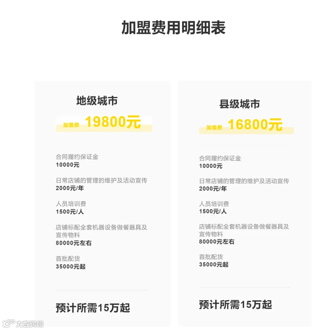 根据官网和报道显示,这类发家于县城的餐饮品牌往往都把单店加盟费用控制在15万左右,甜啦啦、米村拌饭都是如此。
