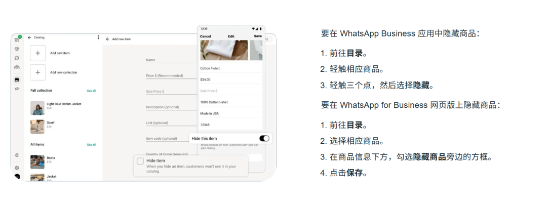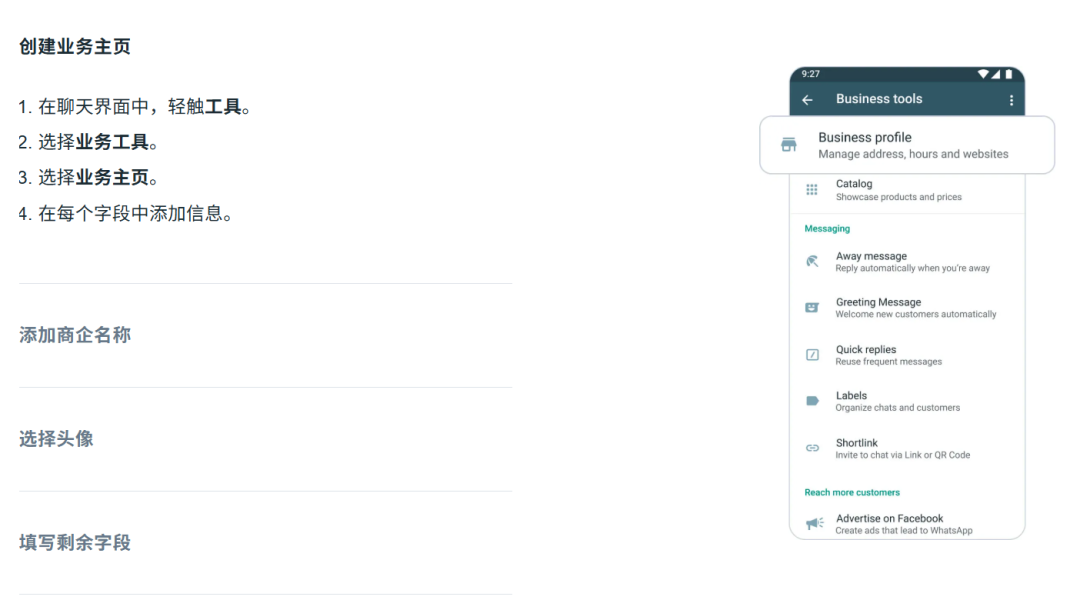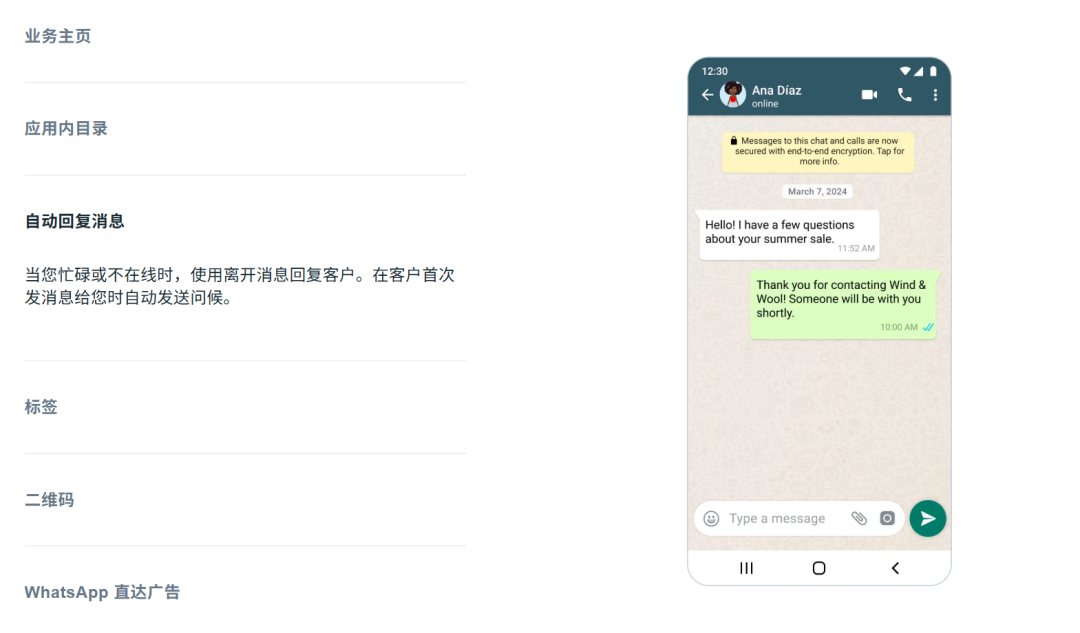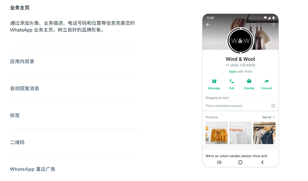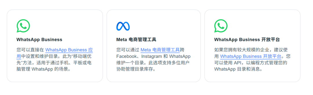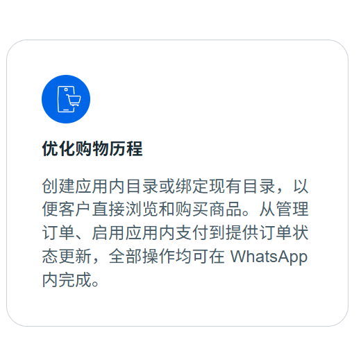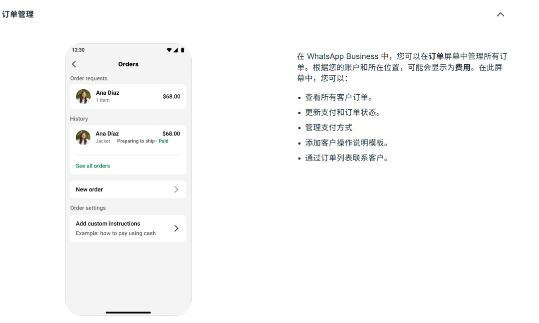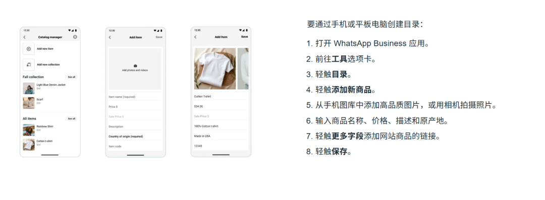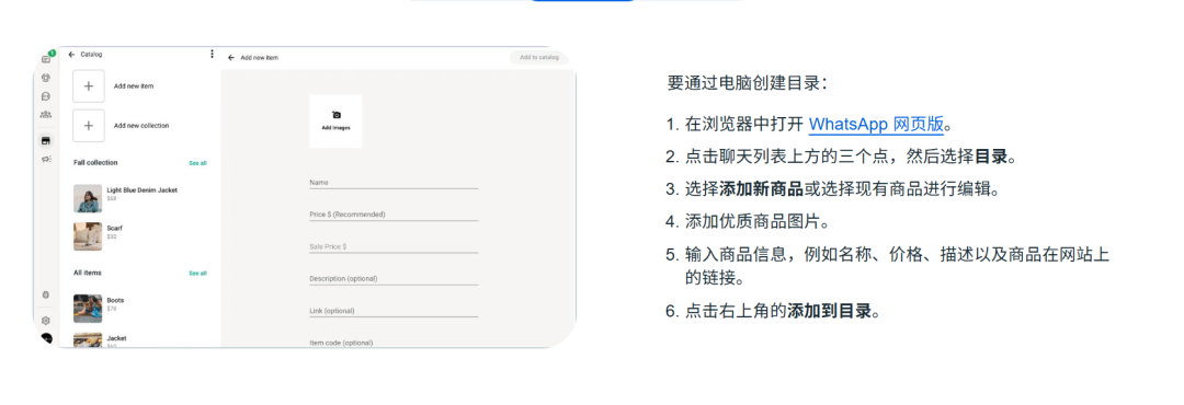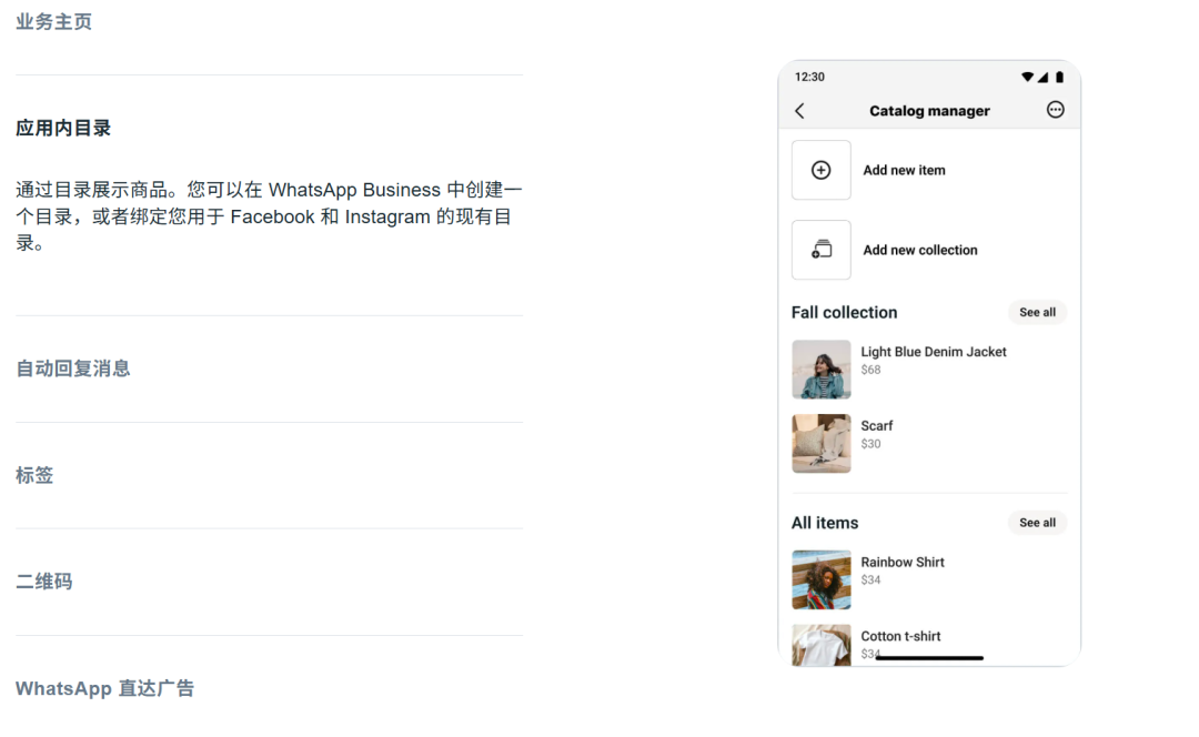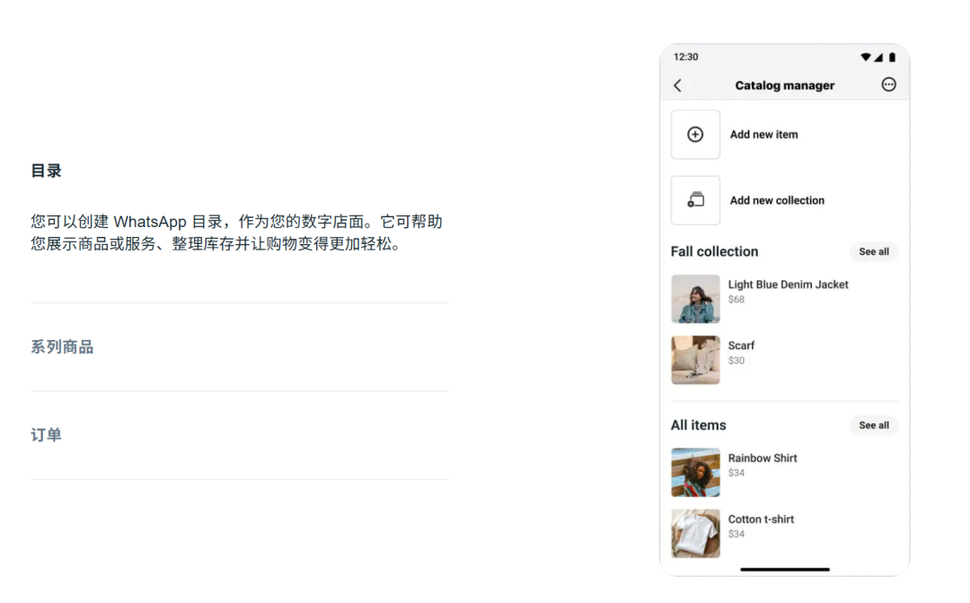 WhatsApp Business 提供目录、系列商品和订单管理三大电商核心功能。