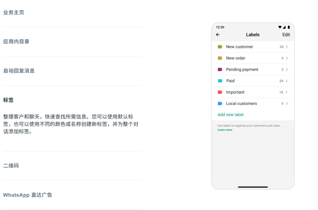 标签管理:使用不同颜色和命名的标签整理客户与聊天。