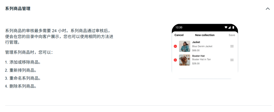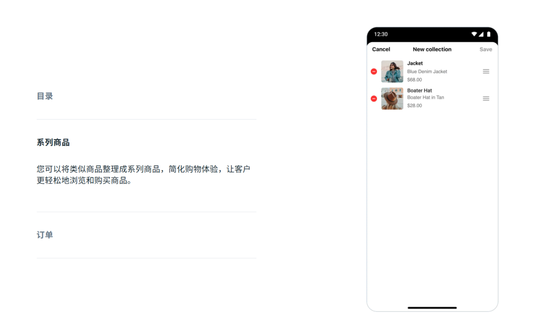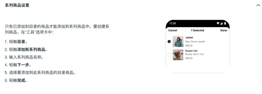 您可以创建系列商品,按类别整理商品和服务,让客户更轻松地浏览和找到需要的商品和服务。例如,您可以针对新品、爆款和 $20 以内好礼创建系列商品。