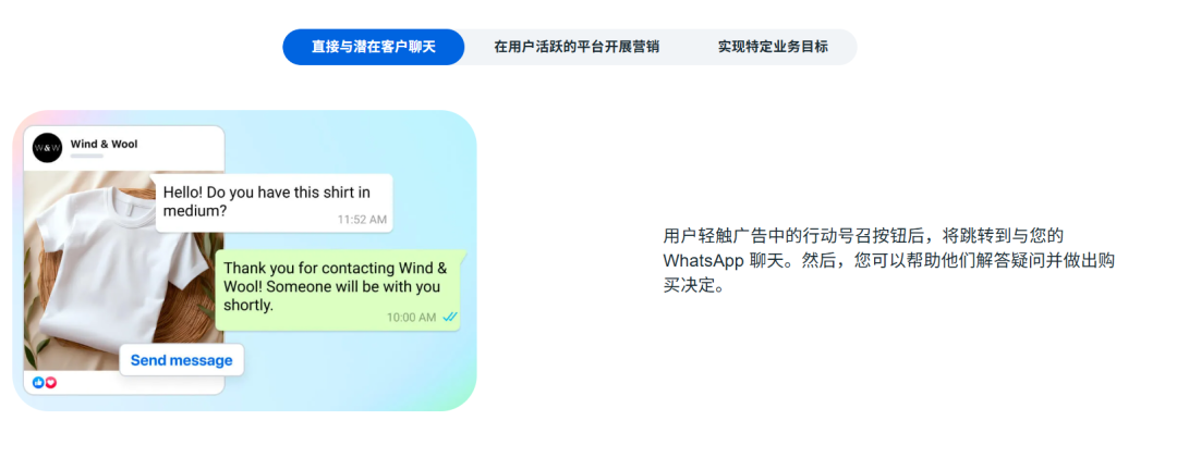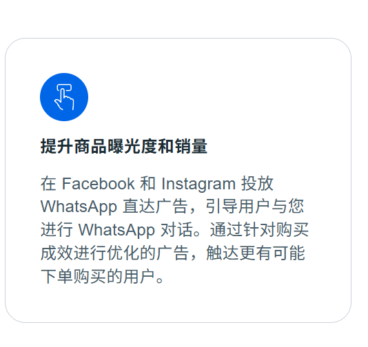 提升曝光与销量:通过 Facebook 和 Instagram 投放 WhatsApp 直达广告。
