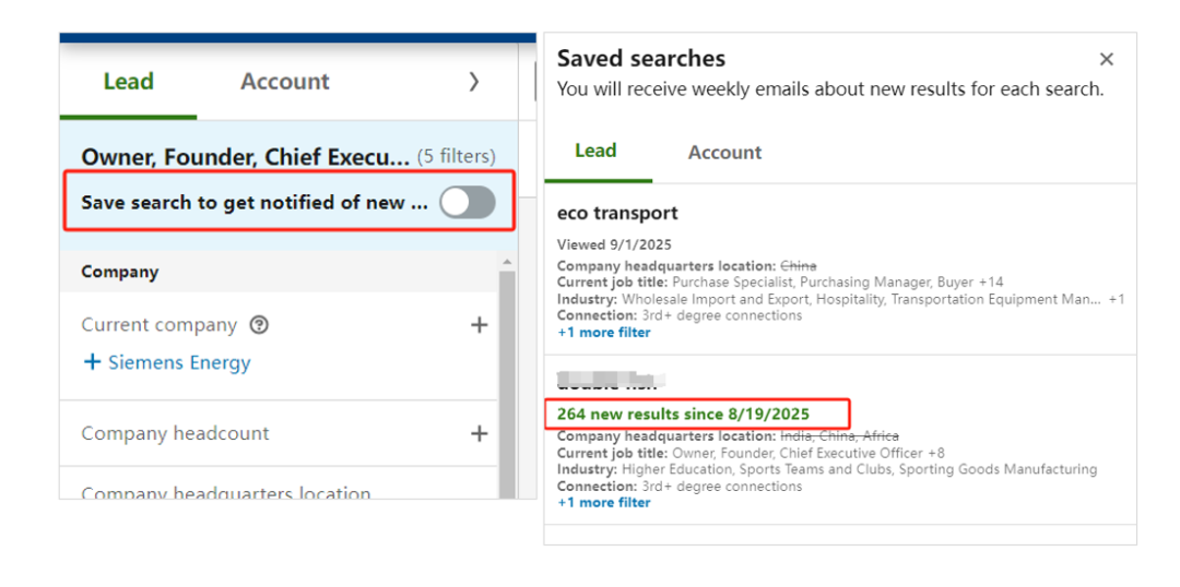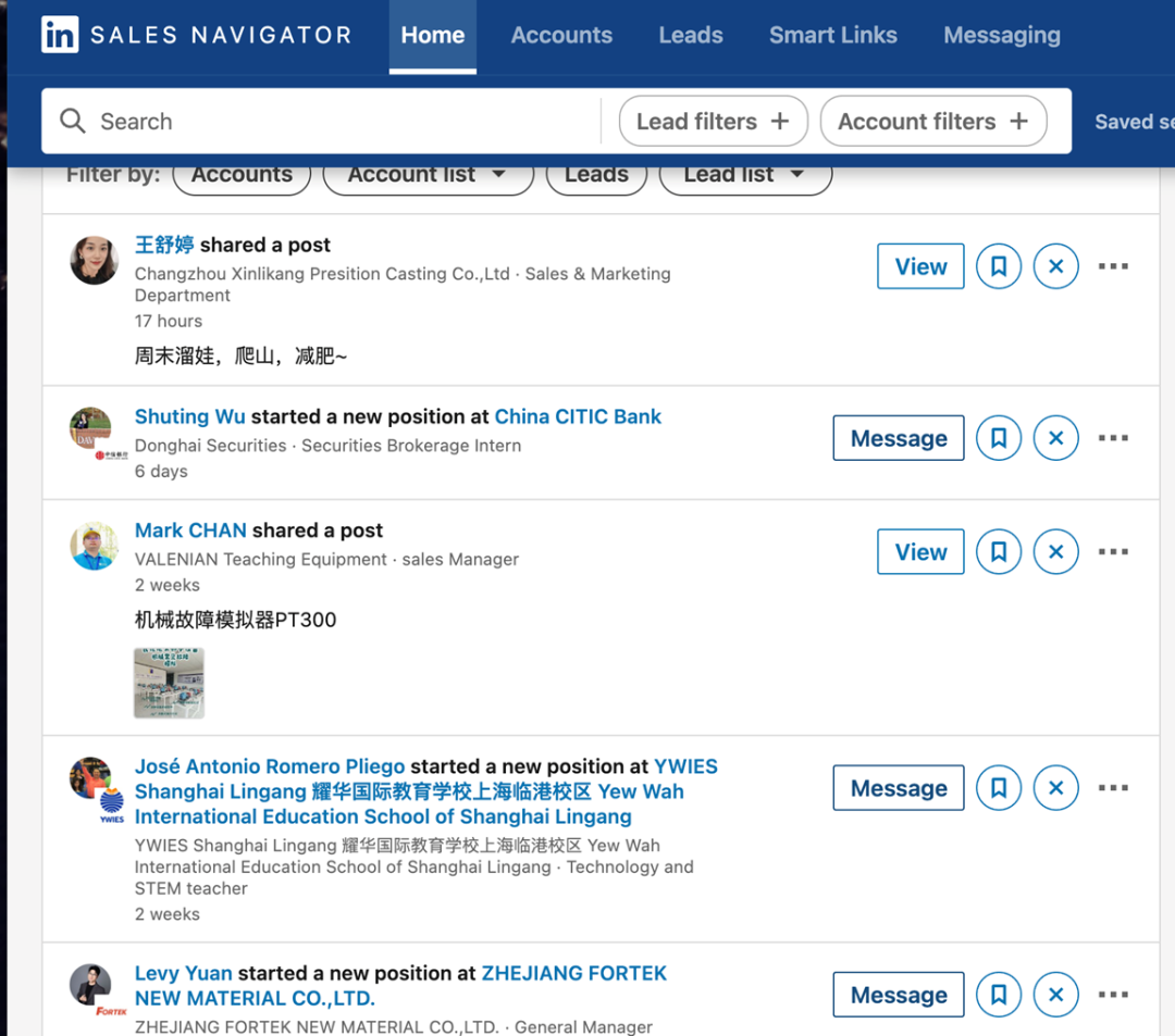 它会为你实时更新你关注的潜在客户和公司的动态。当你的目标客户升职、换工作、或者他们的公司发布了一篇新闻,你都会第一时间收到提醒。这些信息都是你绝佳的破冰机会。