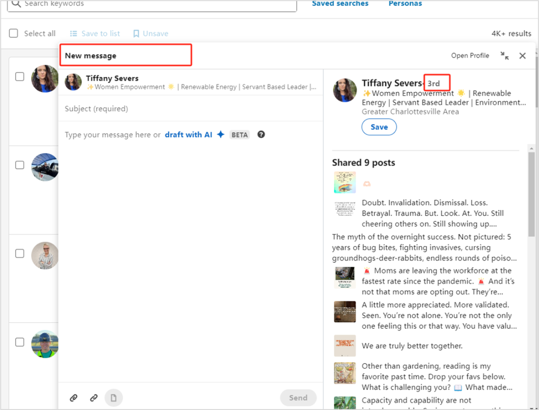 通过 InMail 功能,你可以直接给非一度人脉发送消息,确保你的信息能被对方看到,这大大增加了你成功建立联系的机会。