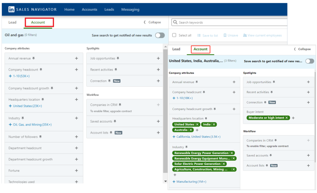 Sales Navigator 提供了大概 35 个用于定位潜在客户的标准。