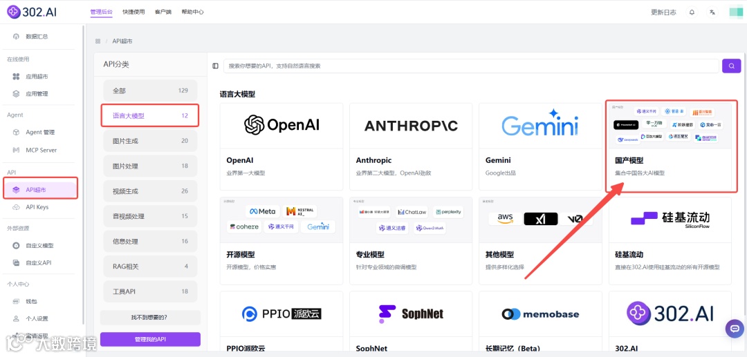 - 文档访问路径:API → API超市 → 语言大模型 → 国产模型 → 查看文档