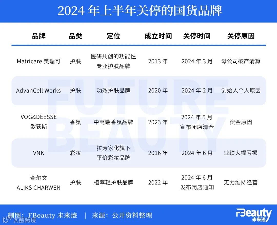 于是,我开始在网上查阅资料,今年上半年,还真不止倒了我们这一个小卡拉米品牌,最起码倒了5个的国货品牌,横跨护肤、彩妆、香氛三个大类,其中还有上市公司旗下的品牌,也因为业绩大幅亏损而关停。