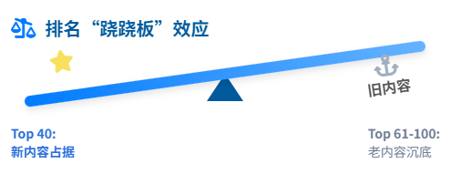 尾部(61-100名)老内容一律沉底,即便再权威也难翻身。