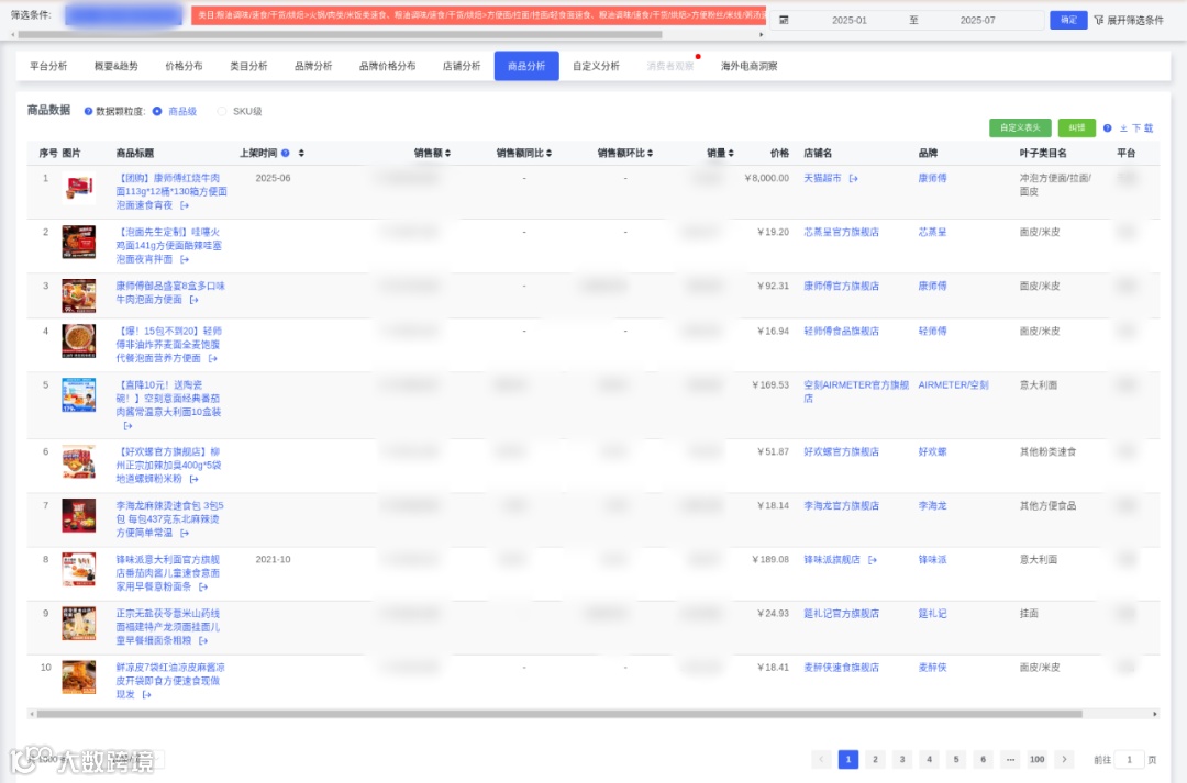 健康产品爆发:非油炸荞麦面(销售额4890万)与无盐茯苓薏米山药线面(销售额3529万)表现亮眼,印证低脂、无添加趋势。