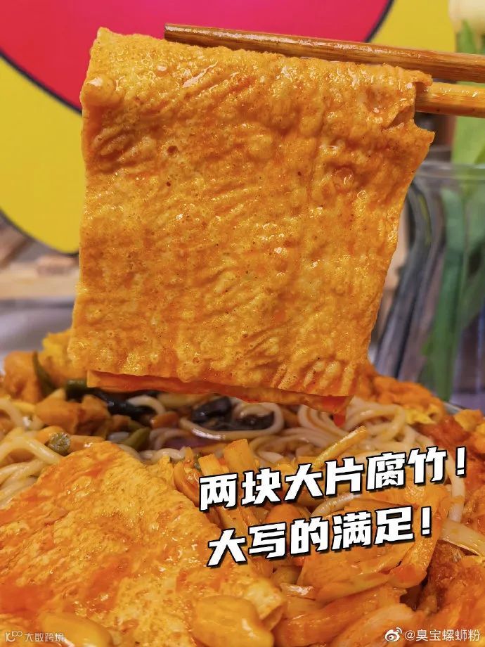 此外,臭宝螺蛳粉还增加了2包酸笋的加臭选项,以及最有特色的“大”料——比手掌还大的超大形态腐竹。