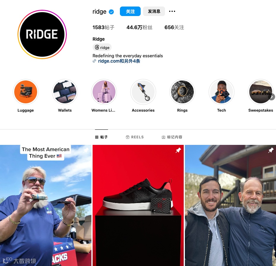 在这个风口中,美国本土DTC品牌The Ridge非常具有代表性。这个以“少带,活得更精彩”的口号切入市场的新锐品牌,已累计销售超 200 万只钱包,GMV突破了1亿美元。