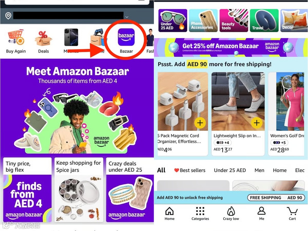 继此前相继在美国、英国、印度、德国等市场推出低价商城Amazon Haul,以及两个月前在沙特上线Amazon Bazaar后,最近,亚马逊又在阿联酋上线了Amazon Bazaar,吹响抢攻中东市场的号角。