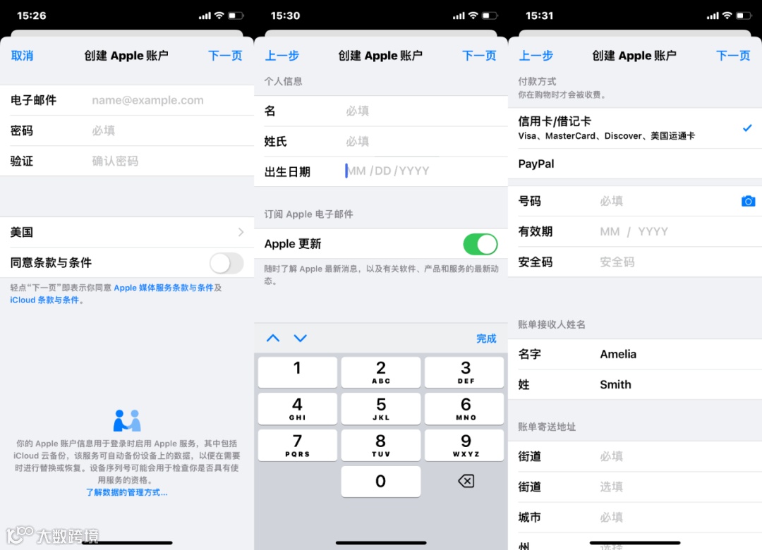 ——使用苹果手机的用户需要在App Store登录美国ID来下载海外的社媒软件,创建美国ID需要用到美国的手机号、地址以及美国的IP地址,还需准备一个邮箱来收取验证码