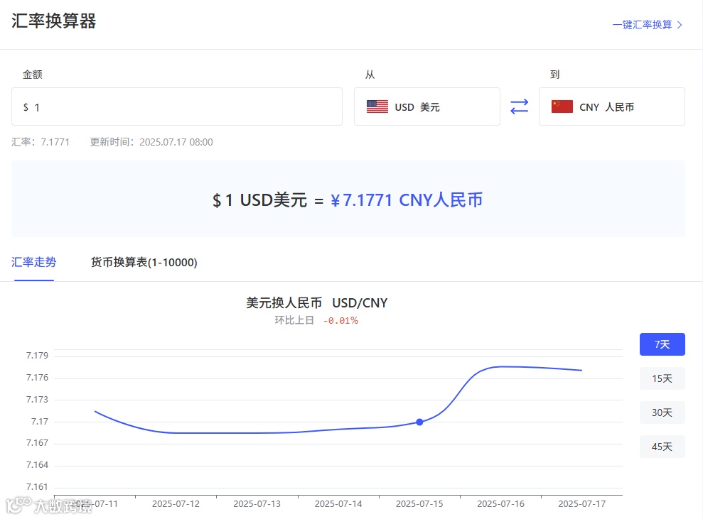 汇率波动像无声的风,随时影响海外购物、留学汇款和外贸结算的成本。当我们问"1美元兑多少人民币"时,背后是对资金价值的精准把握。此刻(2025年7月),1美元约等于7.15-7.17元人民币,但这个数字每分钟都在变化。本文将带你理解汇率背后的逻辑,并介绍一种更高效的换算工具。