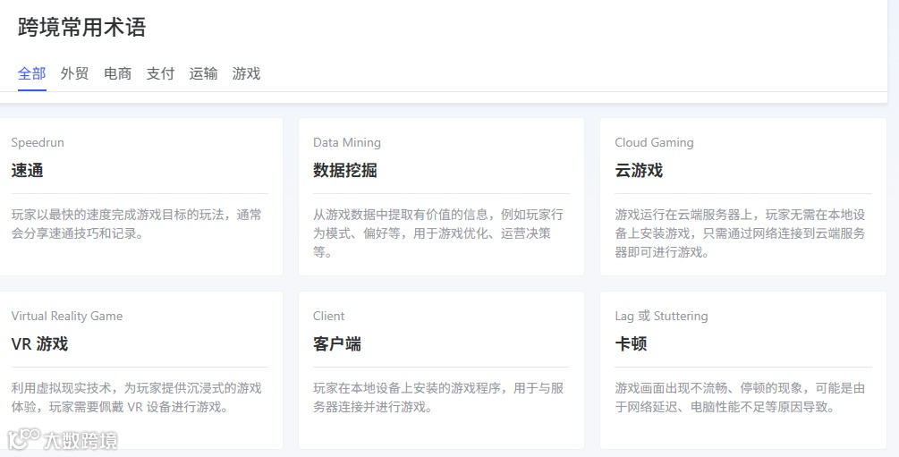 本文将系统梳理跨境电商的核心术语体系,并重点介绍一项能实现秒级术语解析的智能工具——大数跨境平台推出的“跨境常用术语工具”,帮助从业者扫清认知 障碍,提升业务效率。