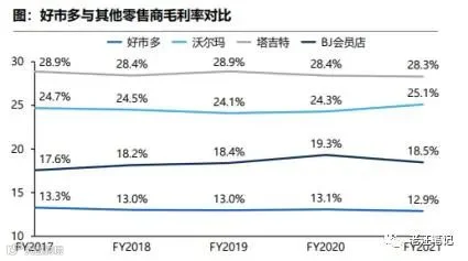 而传统大卖场,如沃尔玛基本在25%一线,便利店则大多在35%上下。