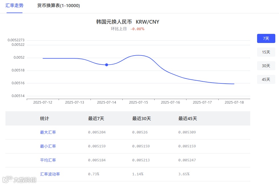 汇率从不是抽象数字。当10万韩元在不同日期相差近2元人民币,放大到百万级订单便是近2万元利润空间。汇率工具的本质,是把不可控的风险转化为可计算的成本。点击进入大数跨境汇率换算工具,输入你的韩元金额,三秒生成最优兑换策略。