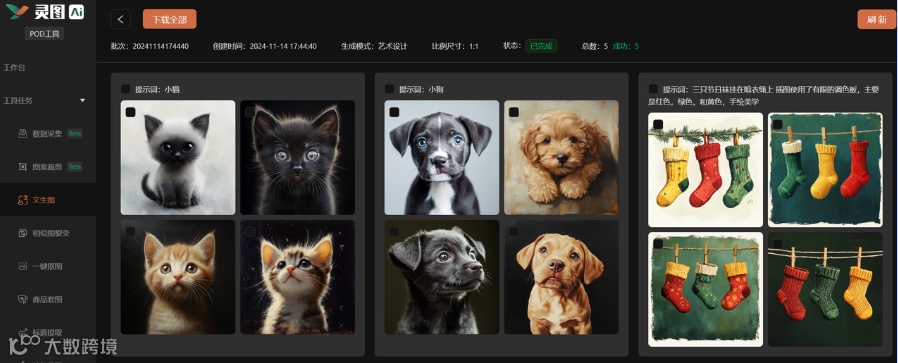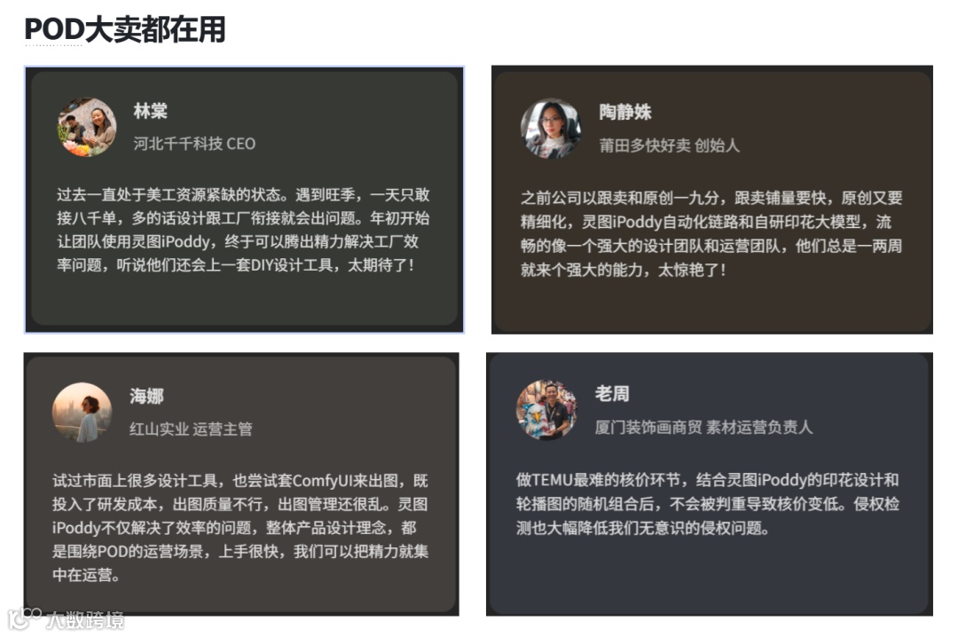 目前已有超过5000位POD卖家使用灵图iPoddy,其中80%反馈效率提升了5倍以上。例如,广州的李老板在使用后,图像处理速度从每天20张提升至每小时1000张,店铺流量30天内增长了200%,现仅需3人即可管理50家店铺。