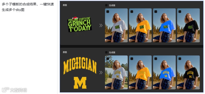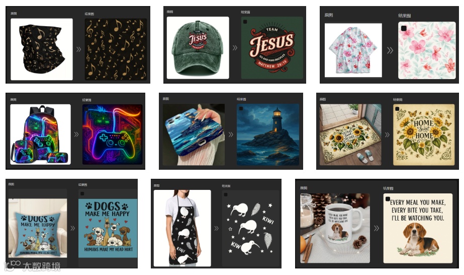 - 解决问题避免卖家在模仿热门图案时,出现英文字母乱码、色彩偏差、艺术效果不佳等导致仿图失败的问题。