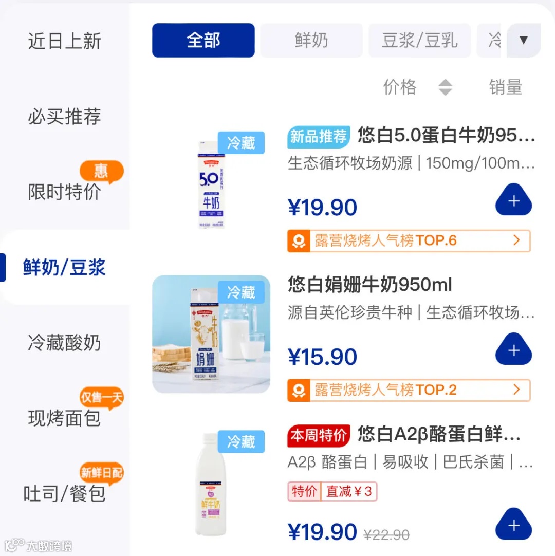 8.6元只是给你的入门震撼,无论是以高端著称的娟姗牛奶,还是半懂不懂的A2β鲜牛奶,通通不到20元: