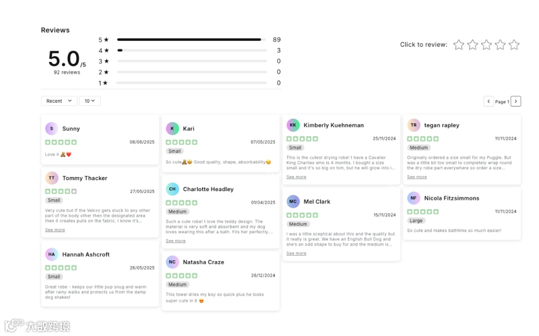 Cocopup London 不把流量局限在 TikTok。它在视频简介中放置独立站链接,以 “首单免运费” 引导用户跳转,还在独立站内设置 “用户晒单墙”,将社交平台的热度转化为私域流量。