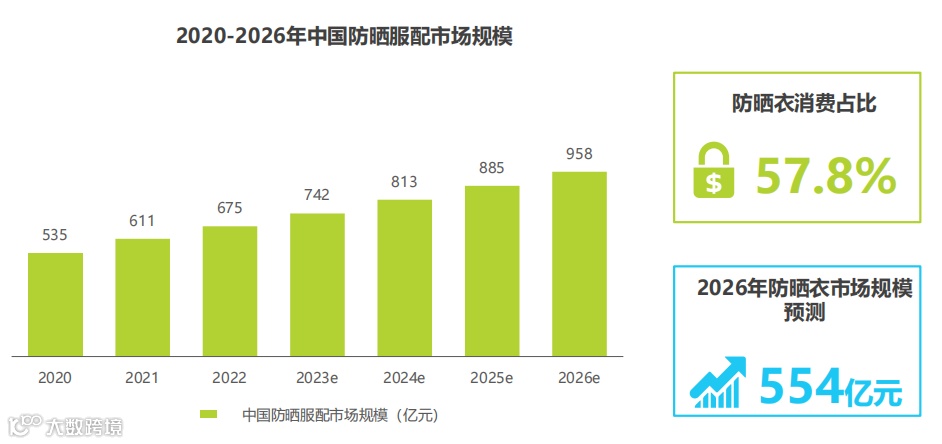 《白皮书》显示,预计到2026年,防晒服配的市场规模可达958亿,而防晒衣在其中占比超过50%,规模将达到554亿。