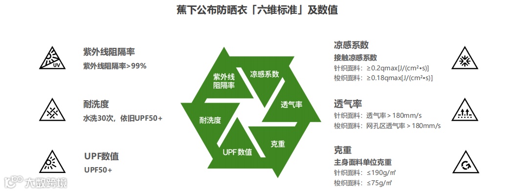 当防晒衣市场进入规范与调整期,为了保障行业的可持续发展,标准制定势在必行,而行业头部品牌不得不担负起更重的责任。于是,蕉下站了出来,把一直作为“内部底线”的防晒衣六维标准向行业公布。