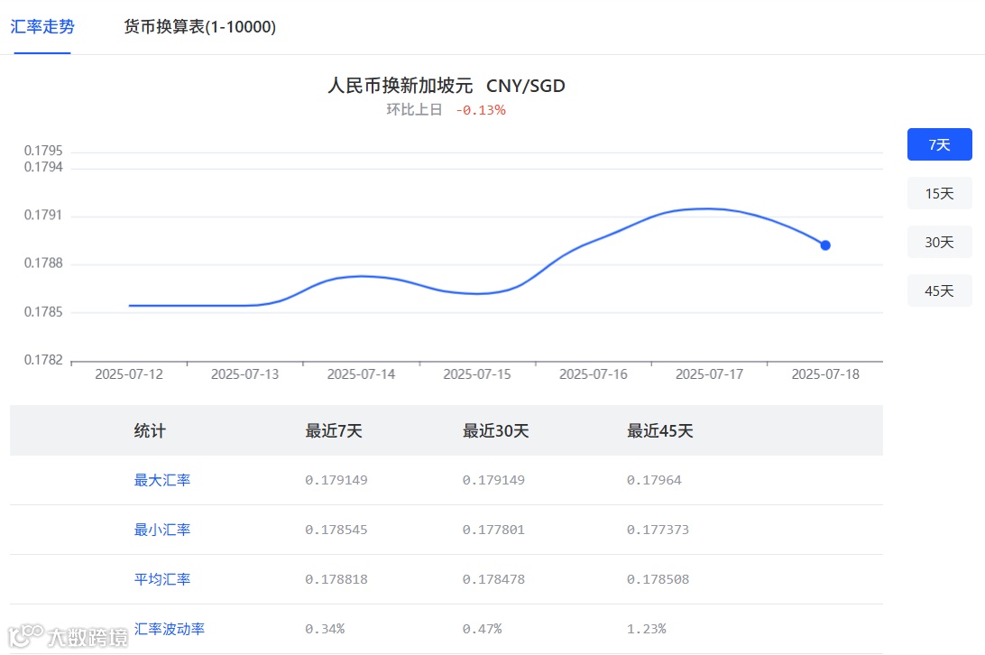 一键查询,精准计算,助您轻松掌握人民币(CNY)与新加坡元(SGD)等全球货币的兑换价值。